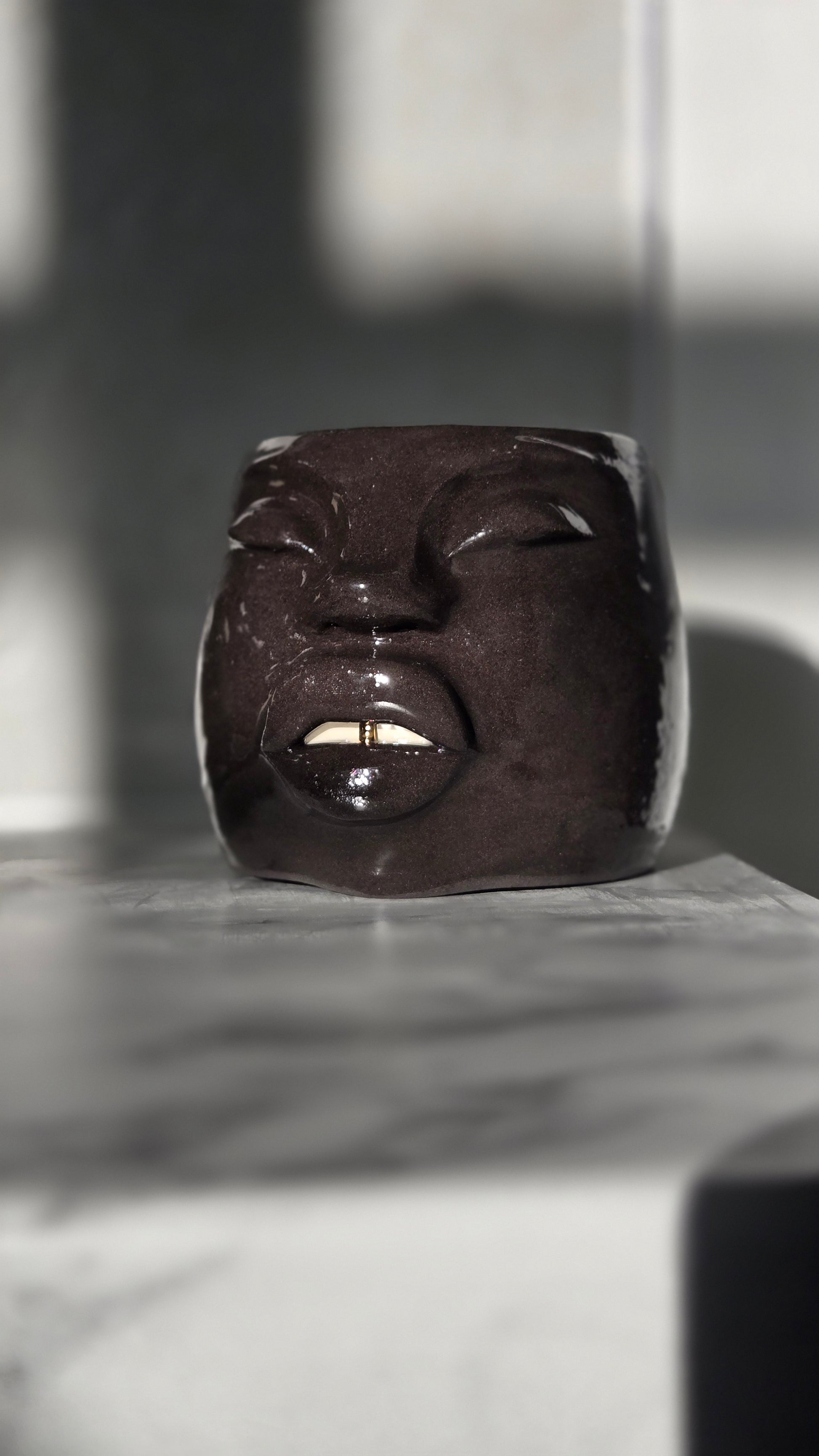 The scent of this small hand-poured candle is aromatic darjeeling tea - once fully used on cosy winter evenings, the vessel can be repurposed as a ceramic cup for drinks and/or succulents! It has been thrown on the pottery wheel to form its shape using earthenware clay, then is meticulously hand sculpted for hours before being slowly dried and fired three times in the kiln to achieve its final look.